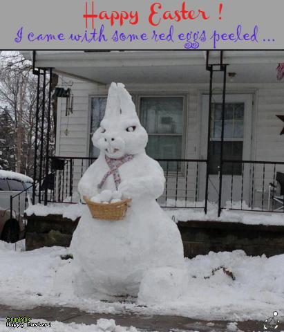 Iepurașul vă aduce un coș cu ouă roșii decojite...
