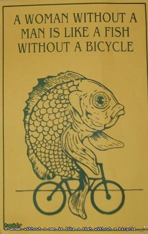 A woman without a man is like a fish without a bicycle